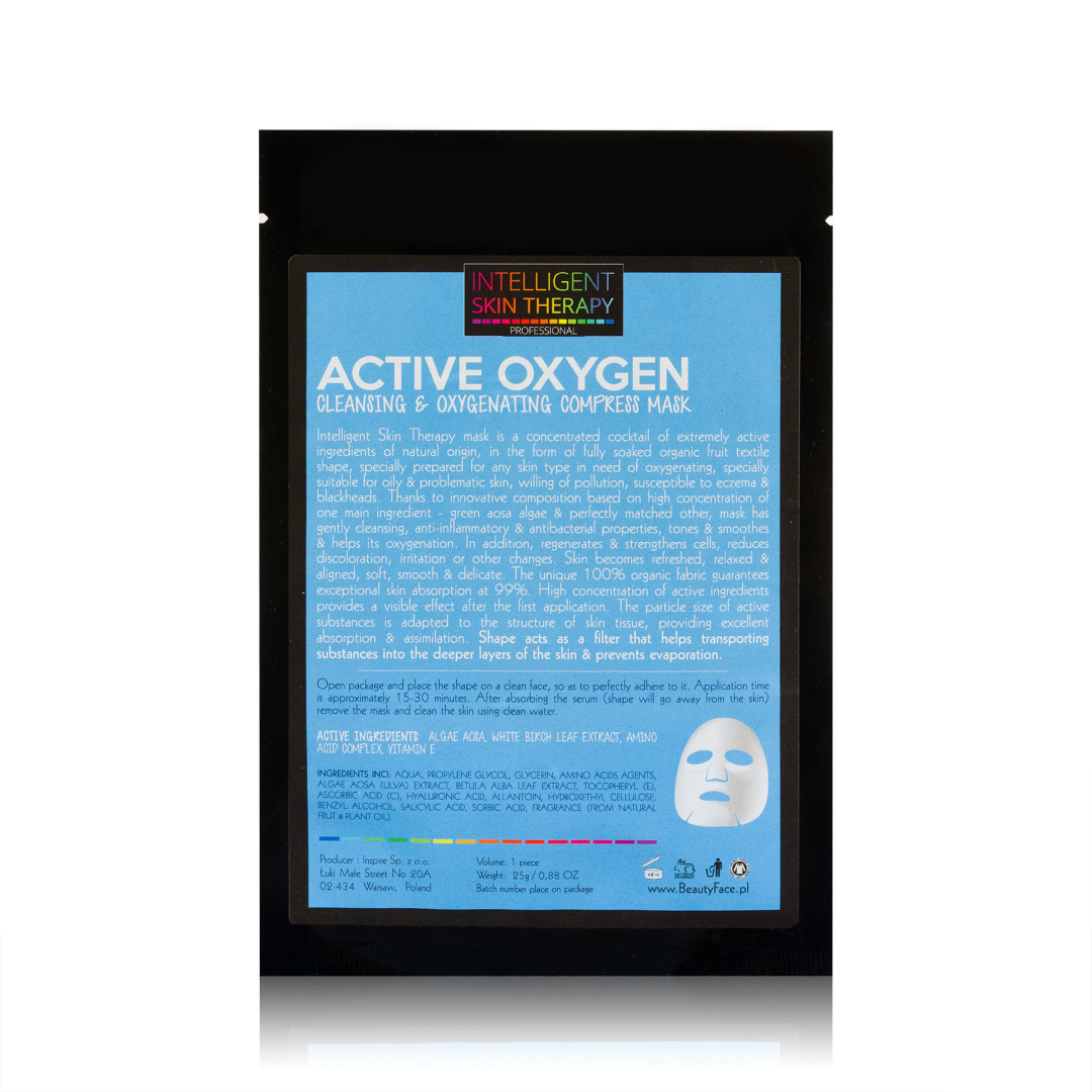 to ekspresowa maska oczyszczająca i dotleniającą z aktywnym tlenem. To wyjątkowe połączenie bawełnianego płata z bio-celulozy, nasączonego wysoko skutecznymi składnikami aktywnymi, które już po pierwszym użyciu głęboko oczyszczają skórę i dostarczają jej solidną dawkę tlenu. Maska wzmacnia struktury skóry, odżywia komórki, poprawia kondycję cery i chroni przed negatywnym wpływem wolnych rodników. Efektem jest stymulowana i odświeżona skóra, bez widocznych niekorzystnych zmian.