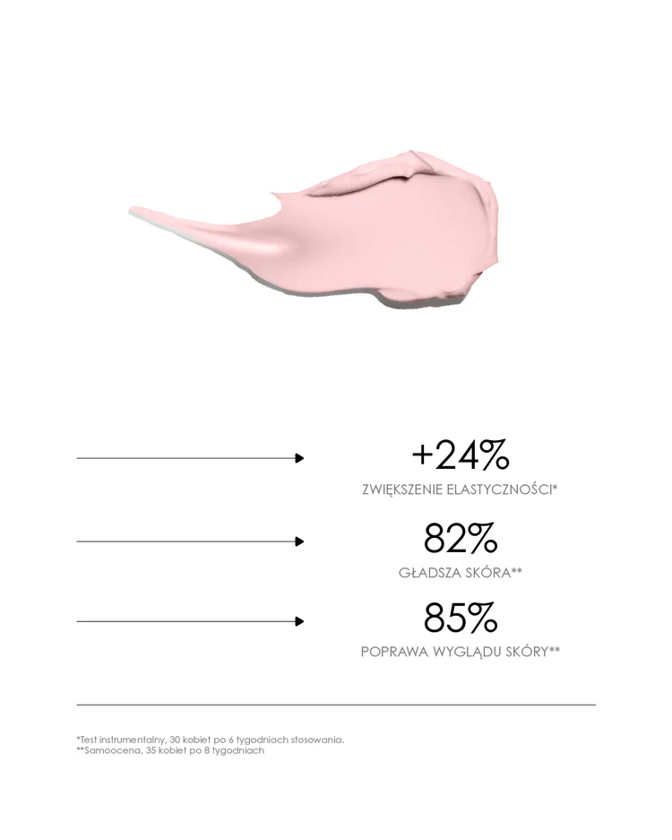 • Hydrolizowany kolagen – poprawia jędrność skóry, redukując widoczność zmarszczek i przywracając jej młodzieńczy wygląd.